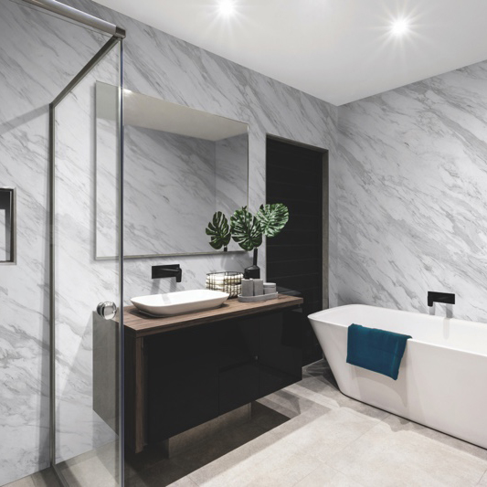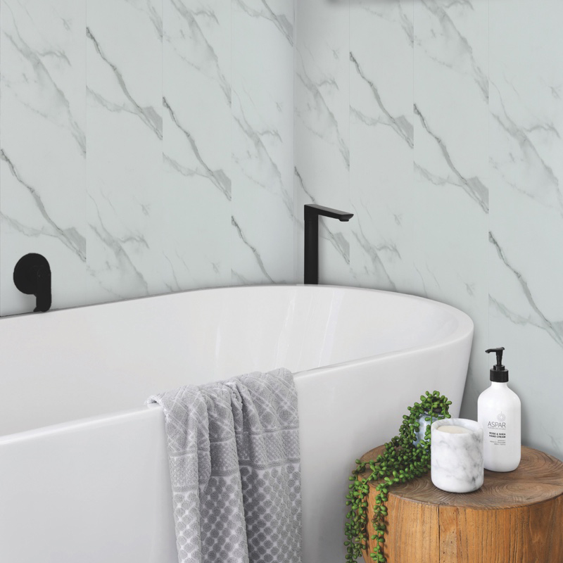 1-Metre Wall Panels: Our widest panels, with fifteen designs in modern matt, gloss, and satin finishes. These durable panels can be used in showers or to transform entire rooms.
